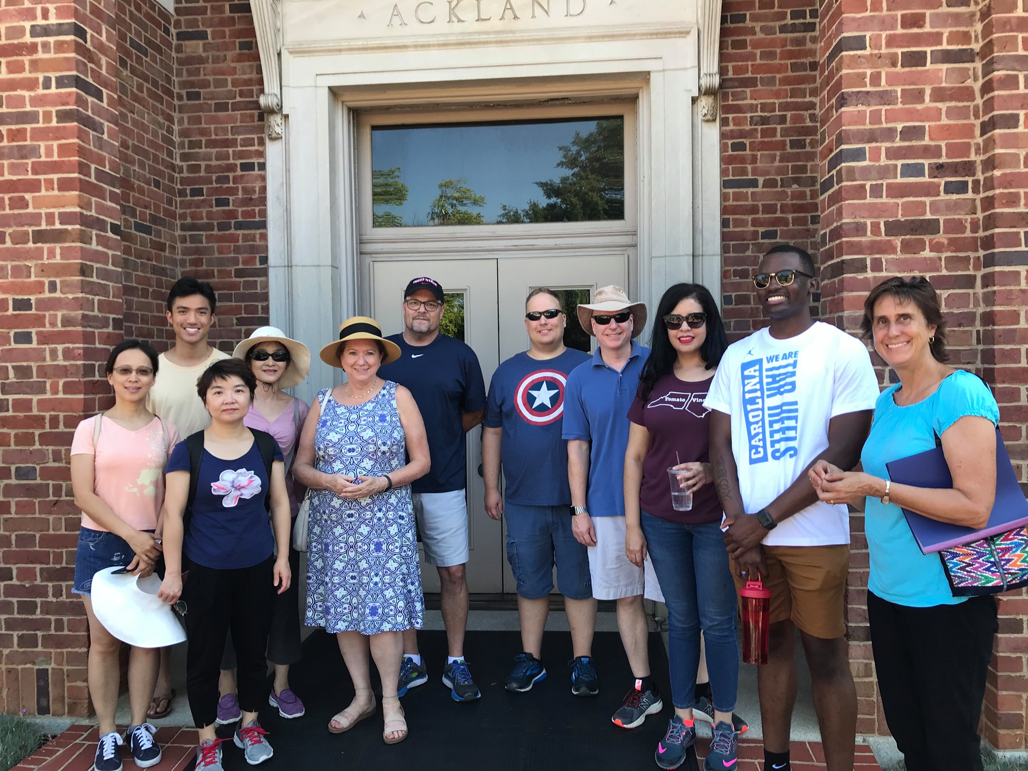 Over the past 6 1/2 years I have guided 2,259 tourists on 412 tours. The visitors have come from 35 countries, 40 different towns and cities in North Carolina, and 46 different states in the USA. I have given tours for local and international travelers, different departments at UNC, the Friendship Force, various corporations, weddings, and soooo many reunions.